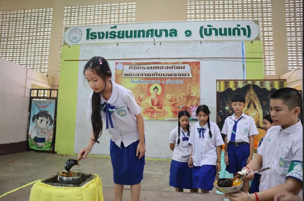 กิจกรรมหล่อเทียนและถวายเทียนพรรษา วันจันทร์ ที่ 7 กรกฎาคม 2568 โรงเรียนเทศบาล ๑ (บ้านเก่า) ได้จัดกิจกรรมหล่อเทียนและถวายเทียนพรรษา เพื่อให้นักเรียนได้เรียนรู้และมีส่วนร่วมในการอนุรักษ์ประเพณีอันดีงามของไทย เนื่องในเทศกาลเข้าพรรษา ซึ่งเป็นช่วงเวลาสำคัญของพุทธศาสนิกชน การหล่อเทียนพรรษา ไม่ใช่แค่การถวายเทียน แต่คือการปลูกฝังให้เยาวชนเข้าใจคุณค่าทางวัฒนธรรม ศาสนา และมีส่วนร่วมในการอนุรักษ์ประเพณีที่ดีงาม